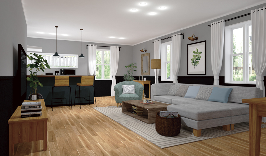 玄関ホールのないこの家は、まるっと家全体をひと続きにしたような繋がりのあるつくり。